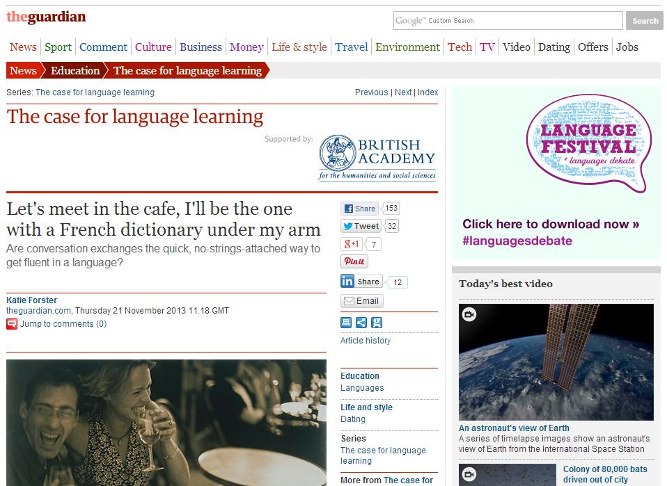 This is not a date, but a foreign language exchange. Our hour of small talk over coffee will be roughly split in half between English and my exchange partner’s mother tongue, which I am learning. We correct each other as we go along, offering idiomatic vocabulary or pronunciation tips when needed, like a free private lesson. […]