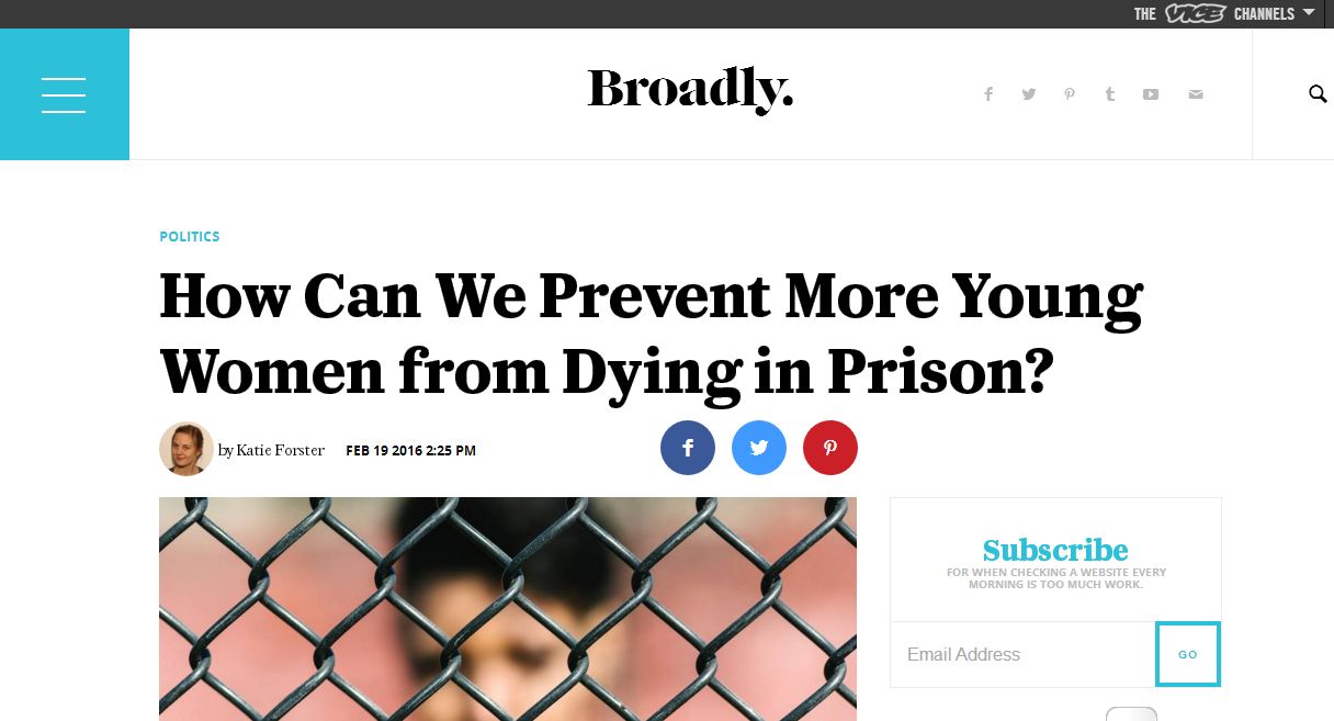 After news broke of Sarah Reed’s death in Holloway Prison, I wrote a feature for Broadly about what can be done to improve conditions for women in the justice system.