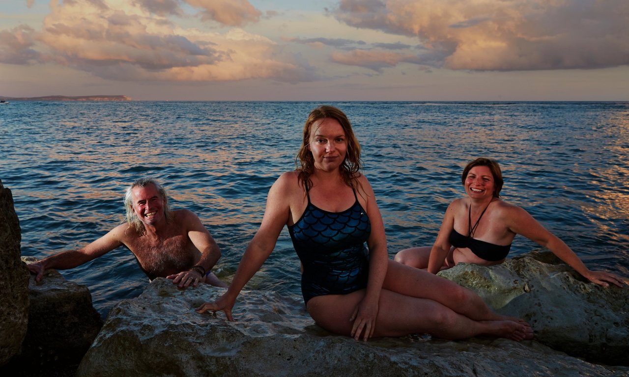“You can swim naked, with a swimming costume, or a wetsuit,” she says. “It depends on the time of year and how acclimatised you are.”